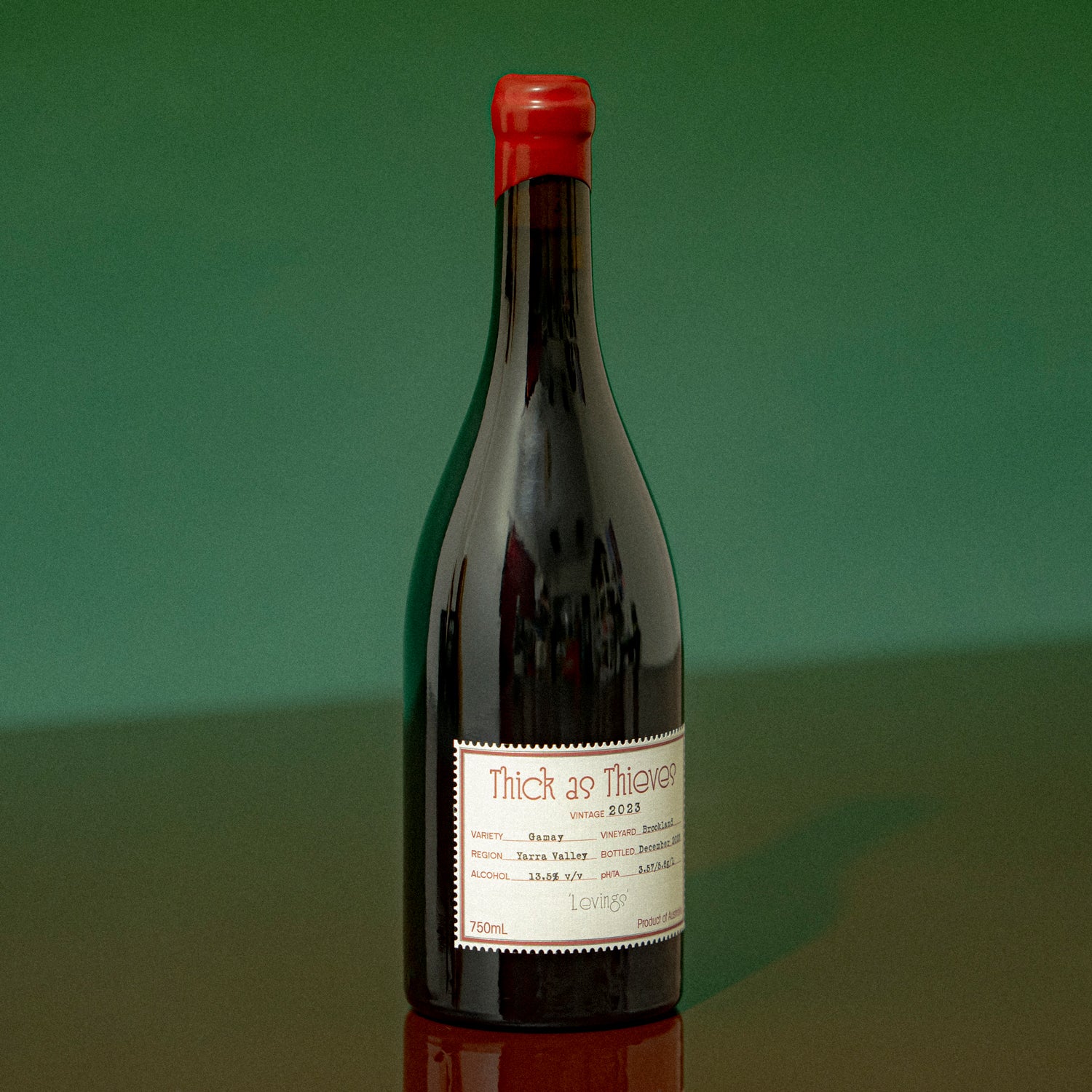 Wild-hearted Gamay, seriously distinctive. Thick as Thieves’ Levings comes from the Brooklands vineyard on the Yarra Valley floor, made with 100% whole bunches, open-pot fermented, naturally finished, unfined and unfiltered. Aromatics pop — jalapeño, smoky mezcal, blackcurrant, cherry and dried flowers. The palate is juicy yet savoury, brooding with spice, earth and silty, powdery tannin. Bright, long, slightly ferrous. Only 1200 bottles at time of writing.